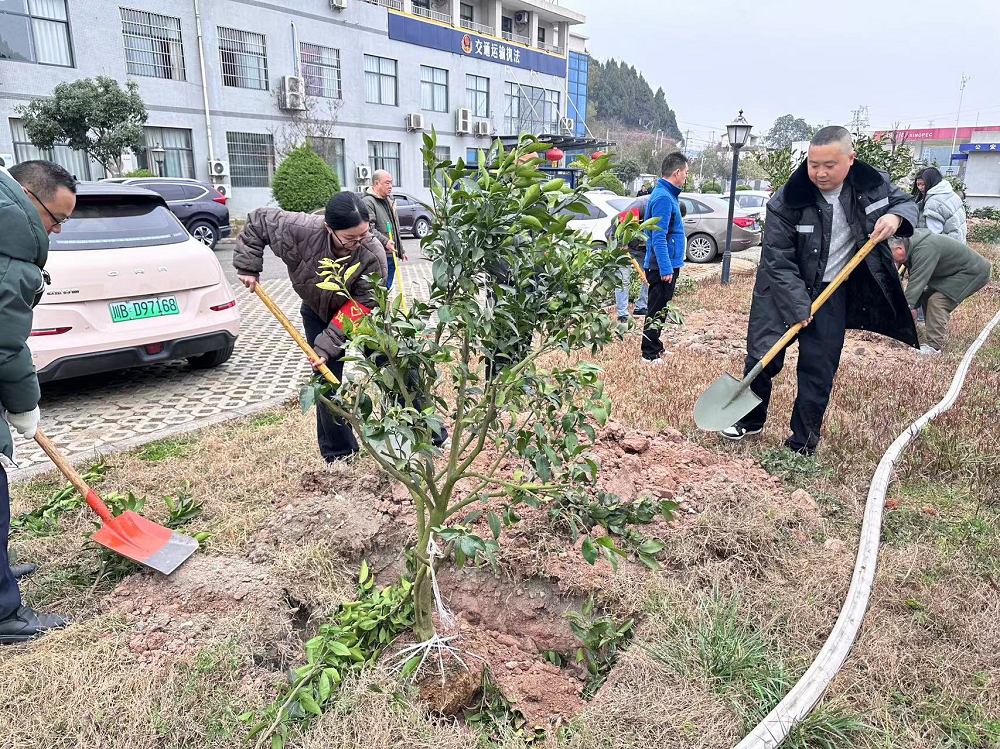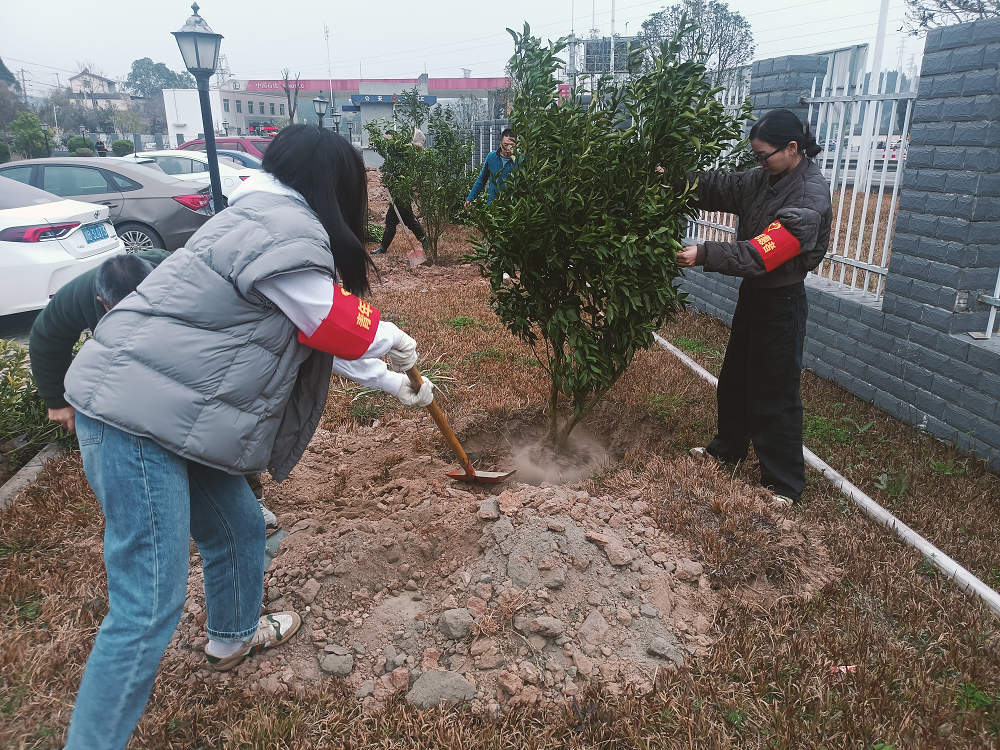 在植樹(shù)現(xiàn)場(chǎng),大家三五一組,揮鍬鏟土、扶苗填坑、各司其職,合力栽下了一株株樹(shù)苗,處處呈現(xiàn)出一派熱火朝天的忙碌景象。經(jīng)過(guò)一上午的辛勤勞動(dòng),30多株柑橘、金桔等樹(shù)苗在自己的屬地“安家落戶”,把原本一片空草地裝點(diǎn)的生機(jī)盎然,形成了一道亮麗的風(fēng)景線。